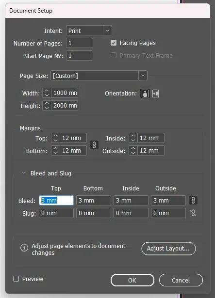 - Select the > arrow next to Bleed and Slug to show more options